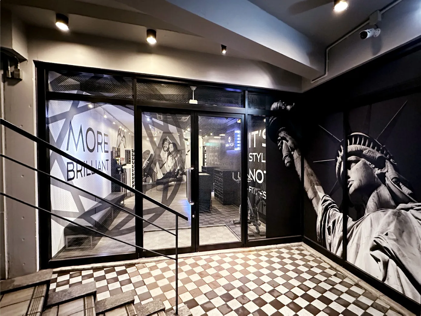 10mほど直進しマクドナルドのある五差路に出たら、パソコン工房と三井住友銀行の間の道に入って、すぐ左手にあるパソコン工房とマチダベッカリーの間の細い坂道を上り、突き当りの1FにMEN'S TBCがあるビルを階段でB1Fへ。